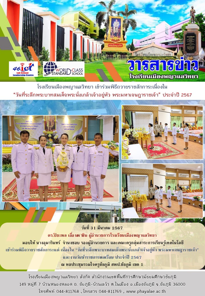 31 มีนาคม 2567 เข้าร่วมพิธีถวายราชสักการะเนื่องใน "วันที่ระลึกพระบาทสมเด็จพระนั่งเกล้าเจ้าอยู่หัว มหาเจษฎาราชเจ้า" และงานวันข้าราชการพลเรือน ประจำปี 2567