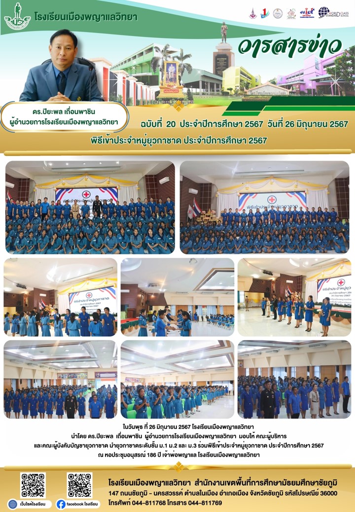 26 มิถุนายน 2567 พิธีเข้าประจำหมู่ยุวกาชาด ประจำปีการศึกษา 2567