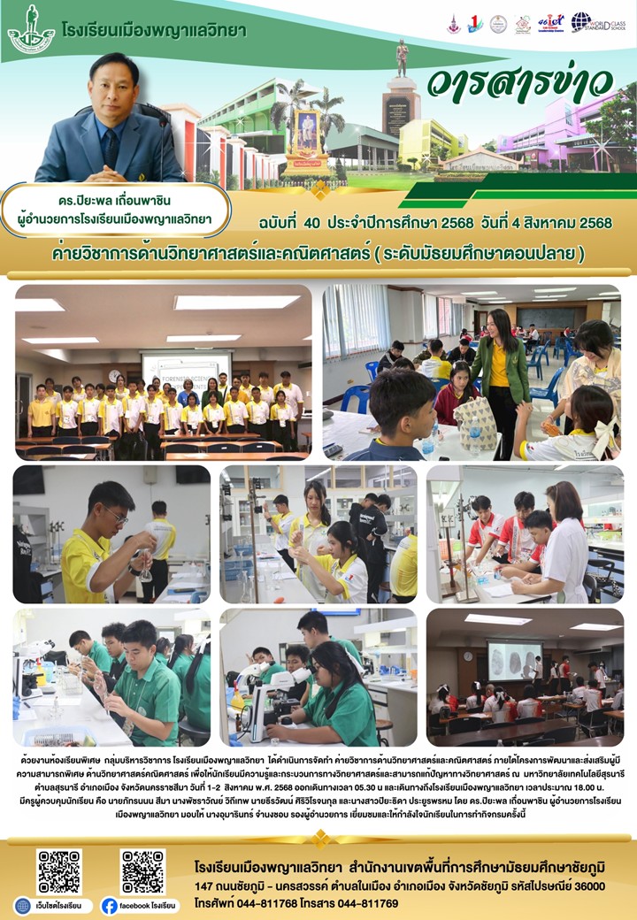 4 สิงหาคม 2568 ค่ายวิชาการด้านวิทยาศาสตร์และคณิตศาสตร์ ( ระดับมัธยมศึกษาตอนปลาย )
