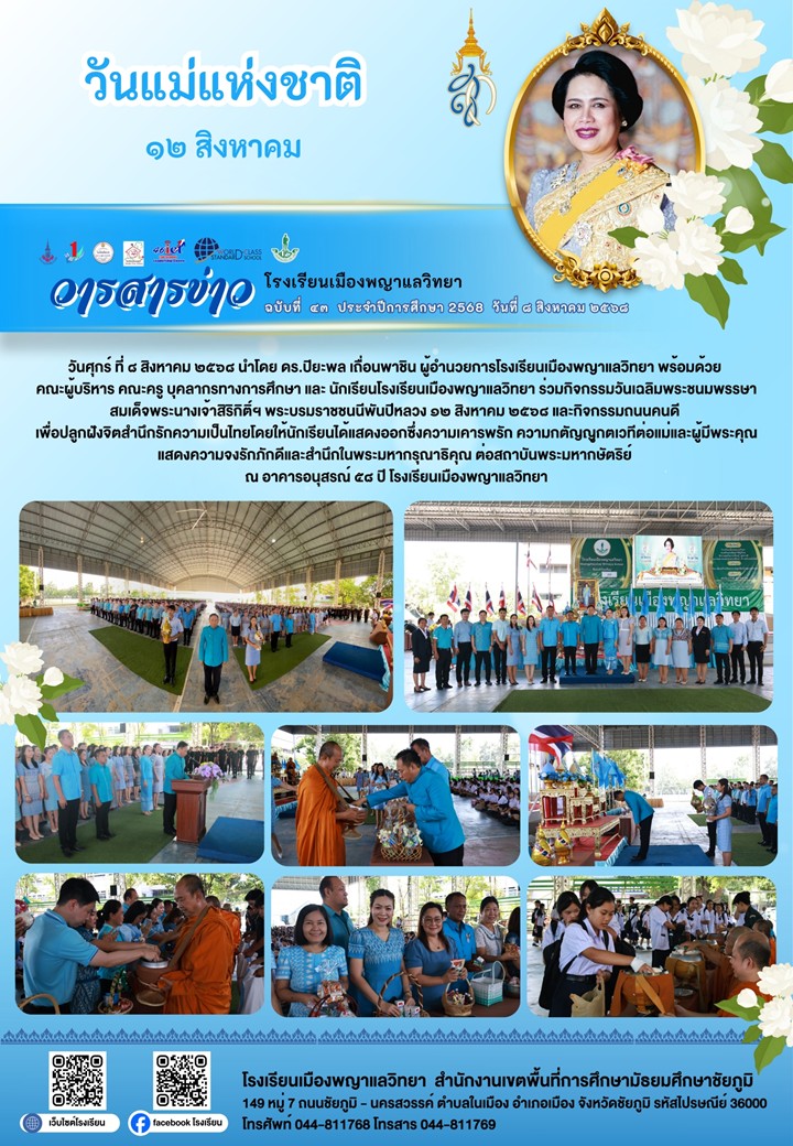 8 สิงหาคม 2568 ร่วมกิจกรรมวันเฉลิมพระชนมพรรษาสมเด็จพระนางเจ้าสิริกิติ์ฯ พระบรมราชชนนีพันปีหลวง ๑๒ สิงหาคม ๒๕๖๘ และกิจกรรมถนนคนดี