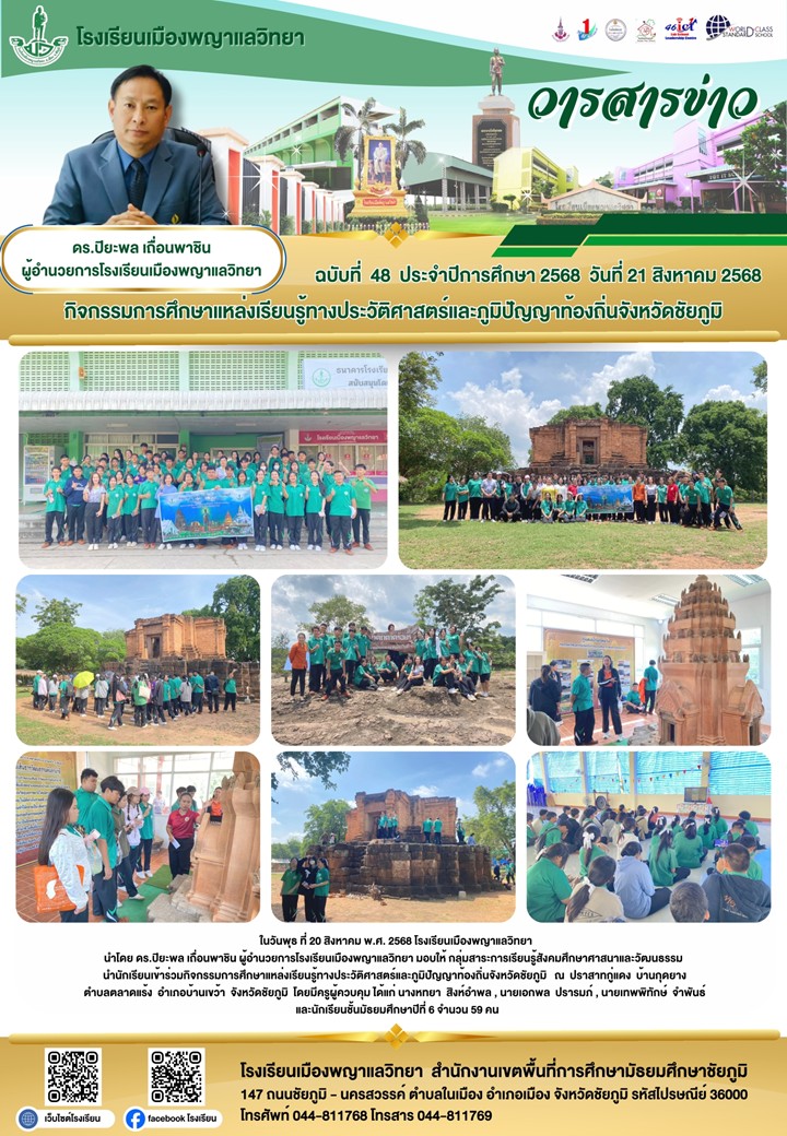 21 สิงหาคม 2568 กิจกรรมการศึกษาแหล่งเรียนรู้ทางประวัติศาสตร์และภูมิปัญญาท้องถิ่นจังหวัดชัยภูมิ