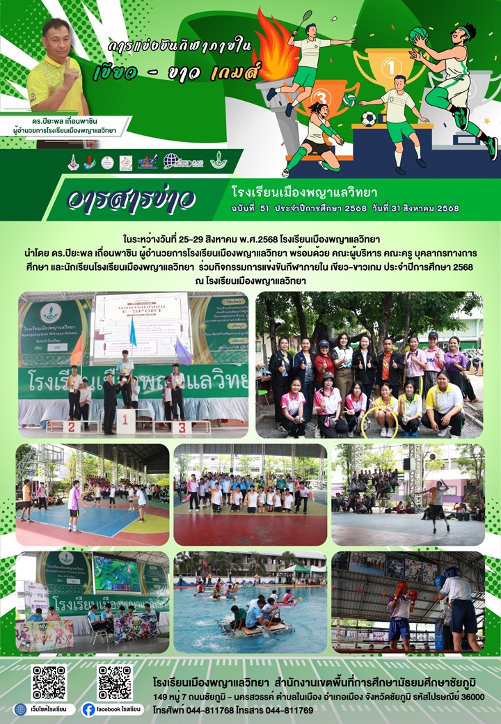 25-29 สิงหาคม 2568 ร่วมกิจกรรมการแข่งขันกีฬาภายใน เขียว-ขาวเกม ประจำปีการศึกษา 2568