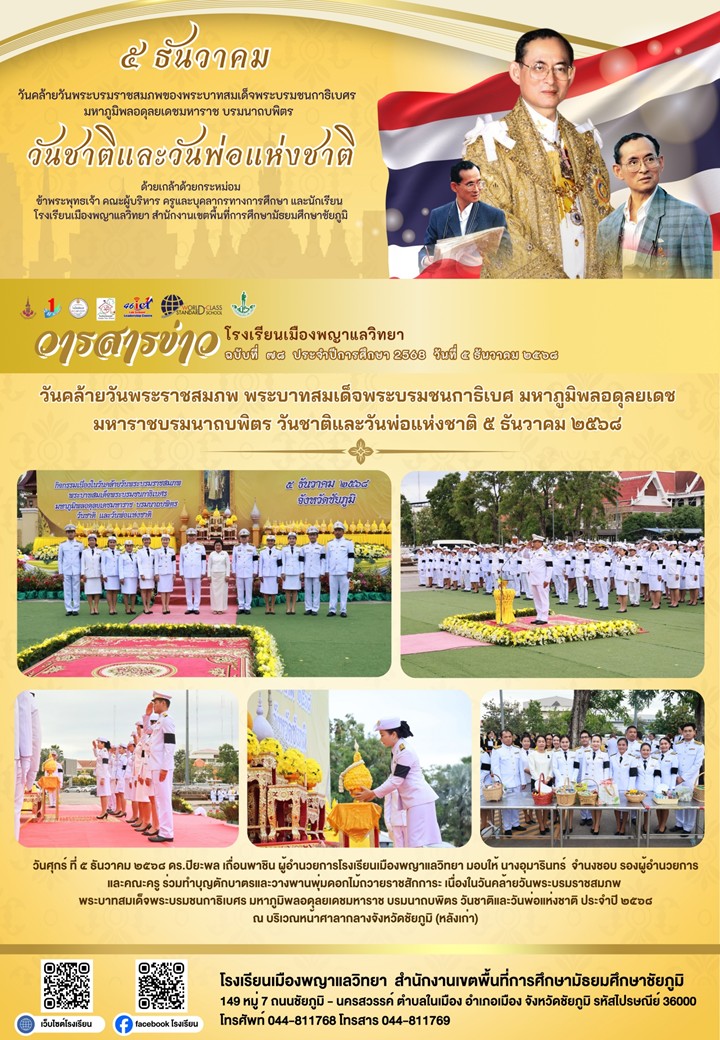 5 ธันวาคม 2568 วันคล้ายวันพระราชสมภพ พระบาทสมเด็จพระบรมชนกาธิเบศ มหาภูมิพลอดุลยเดชมหาราชบรมนาถบพิตร วันชาติและวันพ่อแห่งชาติ 5 ธันวาคม 2568